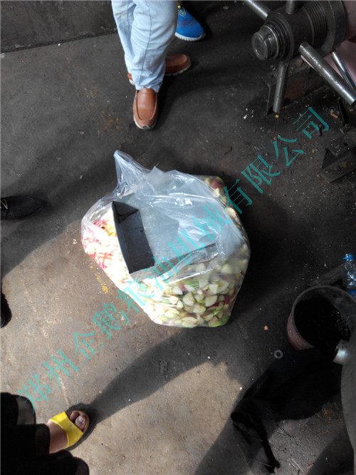 图为客户自带的苹果,将苹果切碎之后放到进料斗。